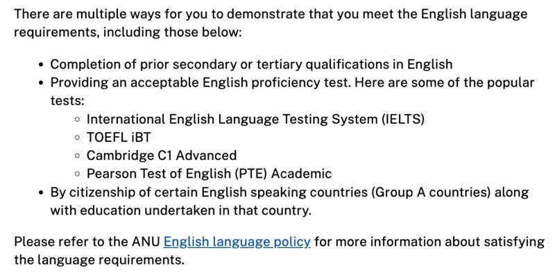 包括澳大利亞國(guó)立大學(xué)、墨爾本大學(xué)在內(nèi)的多所澳洲大學(xué)都宣布,不再認(rèn)可online語(yǔ)言成績(jī),而澳國(guó)立大學(xué)官網(wǎng)顯示,從即日起,不再接受雅思單項(xiàng)重考分?jǐn)?shù)!