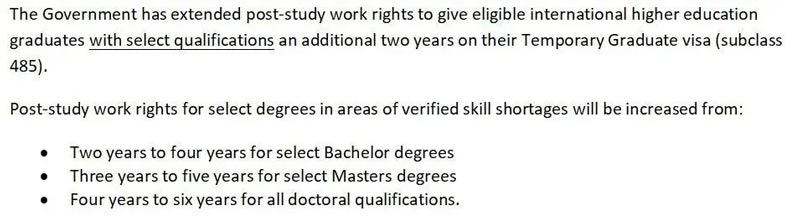 從7月起,教育、醫(yī)學(xué)、護(hù)理、IT、工程、農(nóng)業(yè)、食品等專(zhuān)業(yè)的畢業(yè)生工作簽證可以申請(qǐng)延長(zhǎng)2年,最長(zhǎng)甚至可以達(dá)到6年。